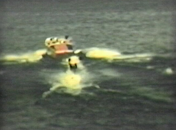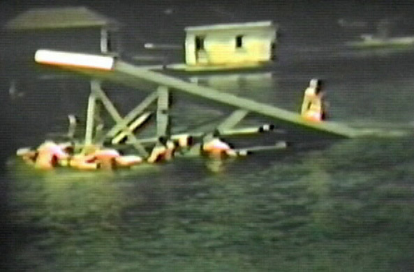 Slalom run around large beach ball size buoys, 1957 Illinois State Championships