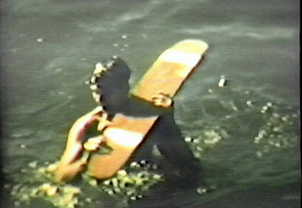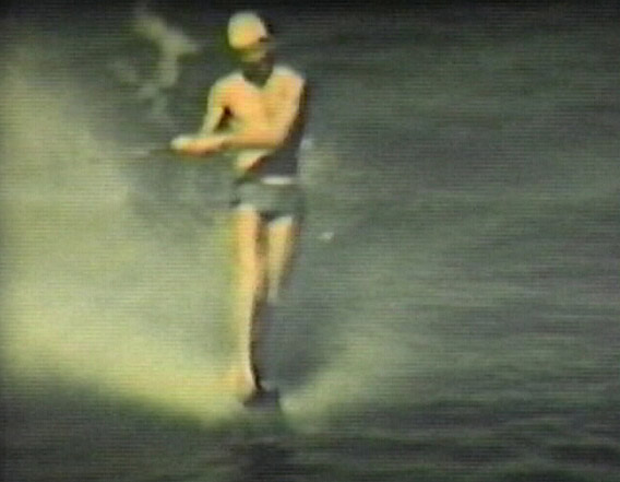 Terry Girgard on 54 inch trick ski, 1957 Illinois State Championships