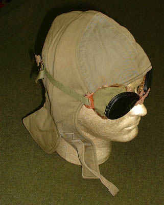 Goggles: ski-mountain, with polished glass lenses, green tinted for UV, infrared and glare protection