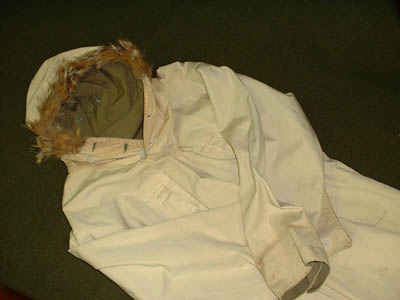 M1941 reversible parka with olive drab color on one side and white on the other for varying terrain conditions.