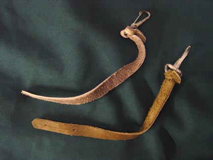Run away straps to prevent skis from being lost if the binding releases. These early bindings were not designed to release while skiing.