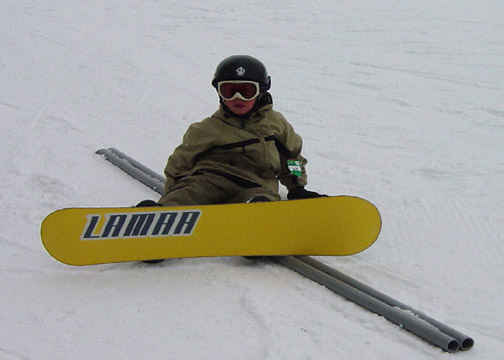 Once they’re on the feature, though, students will quickly learn that it’s difficult to correct a bad line and discover that such efforts usually prove unsuccessful since steering and edging can’t easily rectify an unsatisfactory entry and could even result in a fall. Although there are bound to be a few spills, their consequences are certainly minimized thanks to portable features. With practice, however, most intermediate level students soon learn to ride 50/50 along the entire length of the feature (photo 6). Both the rails and fun box maintain a low profile—resting just above the surface of the snow—to reduce the fear factor associated with standard features in a terrain park. By increasing riders’ chances for success, portable features can tend to boost rider awareness and enthusiasm at the same time.