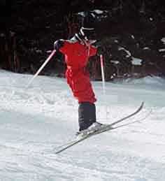Chuck teaching positioning with shaped skis