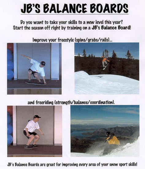 Practice your riding at home with a balance board as shown in Photo 1.