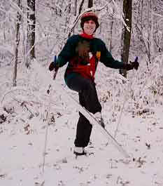 Lift one ski (the downhill ski when on a slope) on its tail.