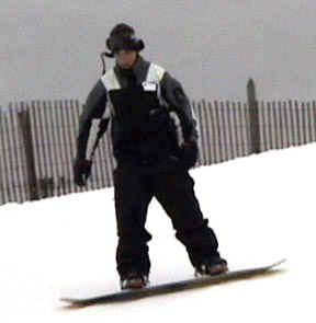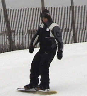 The rider then starts on a heel side traverse in switch position (Photo 4).