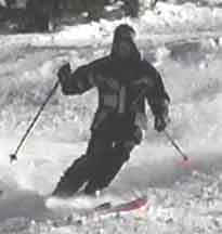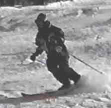 The two photos above show the skier making quick edge changes, a must in bump skiing to prevent excessive speed and to form a serpentine path through the bumps. Picking the proper path through the bumps is a skill that will develop over time. Try to be looking at least one bump ahead so that the turning is smooth and continuous.