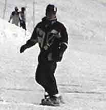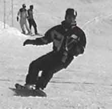 Photo 1 shows the rider in the control phase of the toe side turn. The board edge is solidly engaged in the snow with no skidding. Photos 2 and 3 show the control and completion phases of the turn. Keep the toe edge in the snow with body inclination to assure that you put as much weight on the edge as possible to hold the carve.
