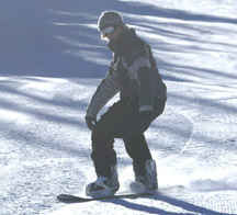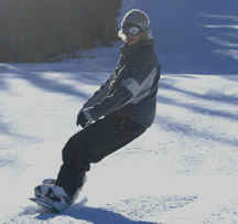 In photo 4 the rider initiates the heel side carve by changing to the heel edge and allowing the center of mass of the body to move over the heel edge.