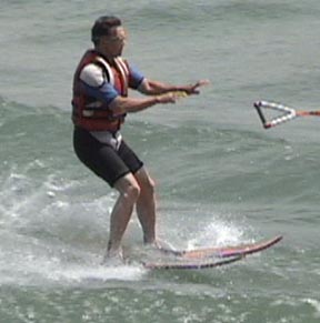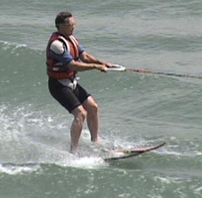 From the skiing position (Photo 1) let go of the handle (Photo 2). Adjust balance as the tow