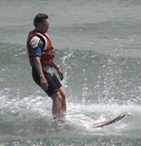 As the skier sinks into the water drag increases which tends to pitch the body forward (Photos 4 and 5).