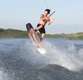 Cut to the wake and get some air (Photos 1 and 2). Wrap the rear or trailing arm around the front leg and grab the toe edge ahead of the