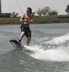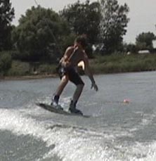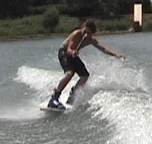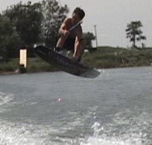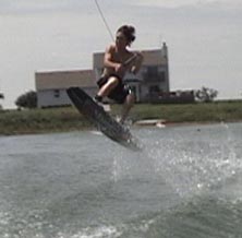 To grab "Indy", jump the wake (Photo 1) and grab the toe edge between the feet with the back hand (Photos 2 through 4).