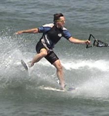 The Royal is a non-ASWA trick that is entertaining and impressive. From the skiing position (Photo 1) let one leg