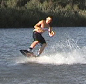 From the regular riding position (Photo 1), lean back on the tail of the board (Photos 2 and 3).