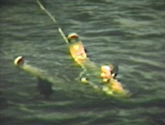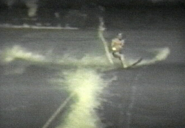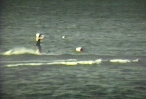 Slalom run around large beach ball size buoys, 1957 Illinois State Championships