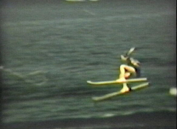 Terry Girgard on 54 inch trick ski, 1957 Illinois State Championships