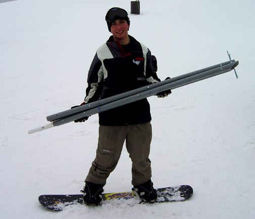 constructed of grey PVC pipe, which is carried in 2 sections for