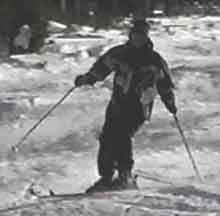 The left photo above shows the skier flexing the legs at the bump for the next turn while the last two photos illustrate leg extension in the control and completion phases of the turn.