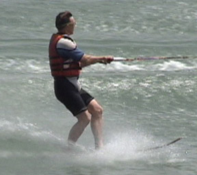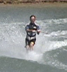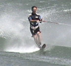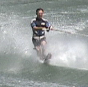 Photos 5 through 8 shows the same sequence only this time the skier is cutting from outside the wake toward the inside.