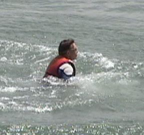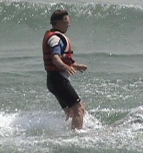 As the skier sinks into the water drag increases which tends to pitch the body forward (Photos 4 and 5).