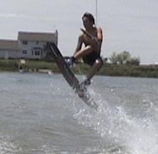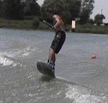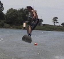 Jump the wake and get some air (Photo 1). Start the 180 rotation and grab melon (Photos 2 through