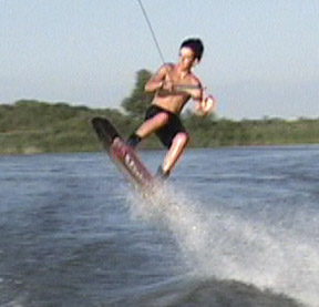 Cut to the wake and get some air (Photos 1 and 2). Grab the toe edge between the tail and the trailing or back foot