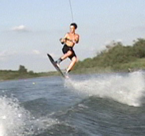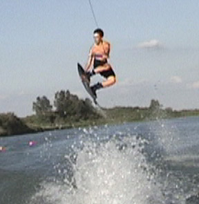 Cut to the wake and get some air (Photos 1 and 2). Grab the heel side edge of the board with the front hand between the