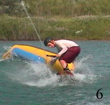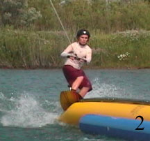Stay low for balance before hitting the transition (Photo 1). Ride up the transition and start to rotate the lower body