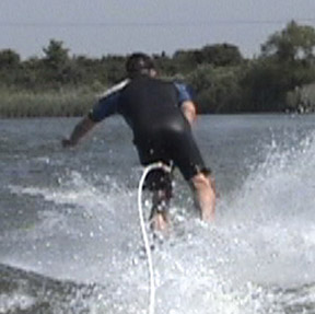 Once your free leg is back over the rope, place it low in the water to act as a rudder for steering