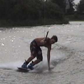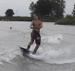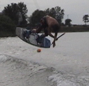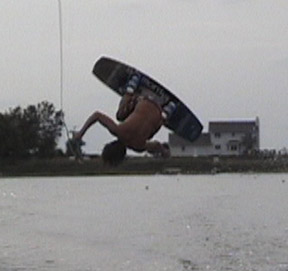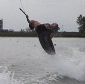 Hit the wake and simultaneously lean back. As you leave the wake you will start rotating toward the back (Photo 2).